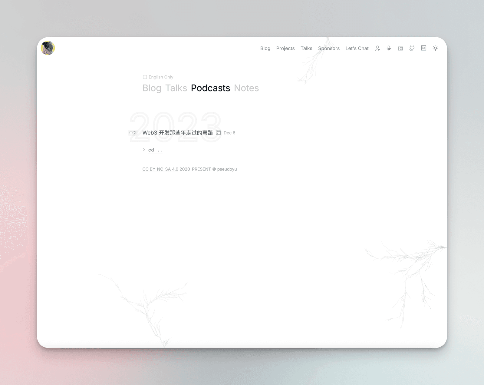 Most of the pages are based on Antfu's already well-developed framework, with minor adjustments to the content. Apart from some personal pages, I made two main adjustments.